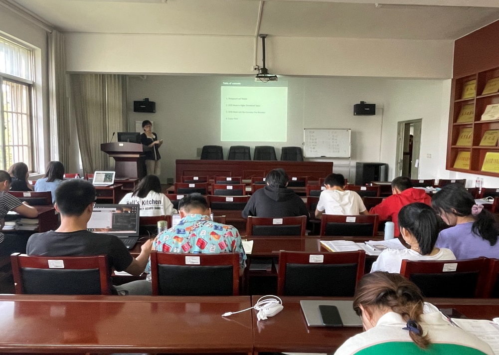 研究生同学的介绍了导管原位癌模型的自由边界问题,其核心是边界会随时间的变化而不断变化。随后,刘单教授为同学们讲解了肿瘤生长的自由边界问题。同学们纷纷表示,此次学术讲座让大家受益匪浅,使同学们了解到数学在生物、医学等不同领域的广泛影响及应用,更加激发了同学们在学术研究上的兴趣和热情。