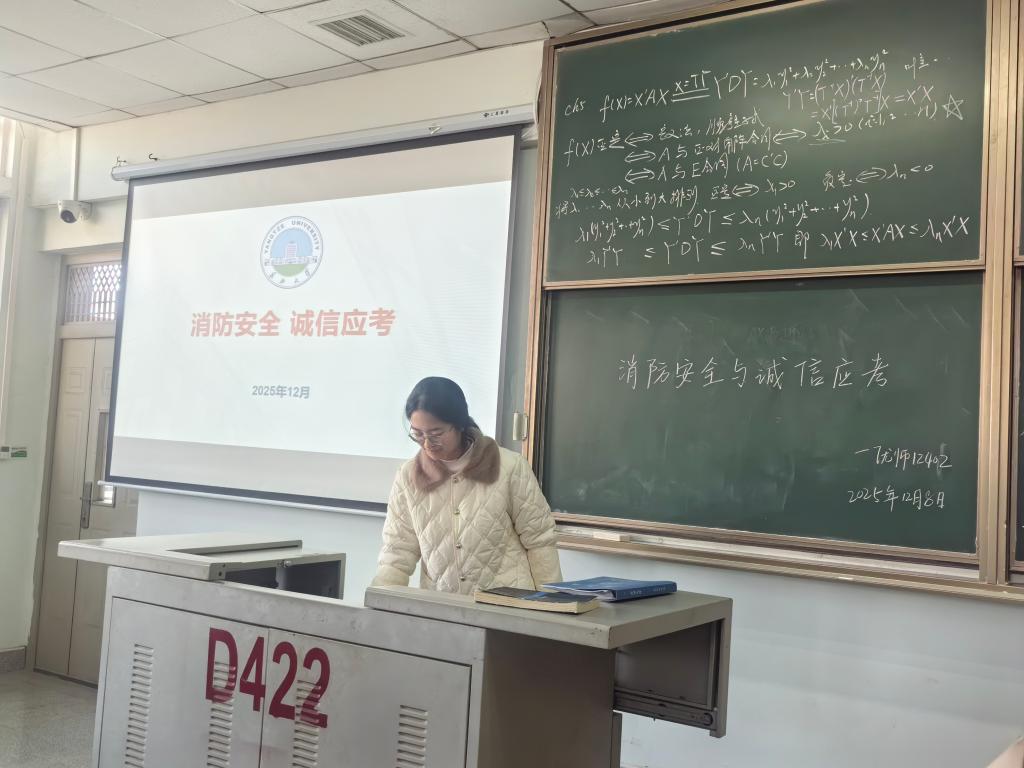 于12月组织各班举办了消防安全与诚信应考教育主题班会。此次班会由各班班长负责组织召开,全体学生均积极参与。班会的目的在于通过集中性教育,增强学生的消防安全意识,强化其诚信考试的观念,切实维护校园安全与考试公正。