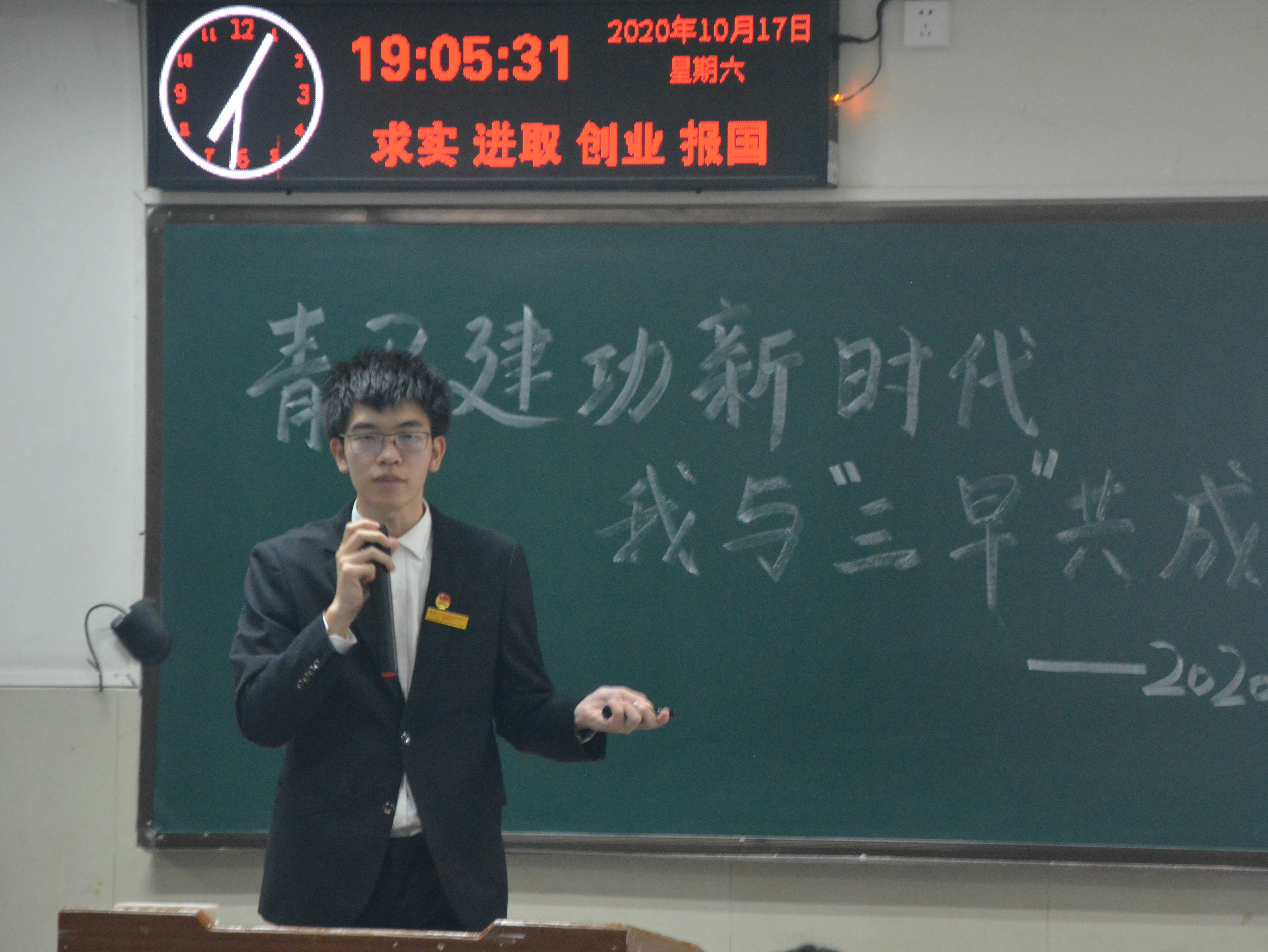 活动最后,青马班学生辅导员朱佐民发表自己的感想,他表示青马班是一个非常优秀的团体,加入青马班会给自己更多的历练,向更好的自己发起挑战,并呼吁大家成为马克思主义继承者,踊跃报名参加第十五期青马班。