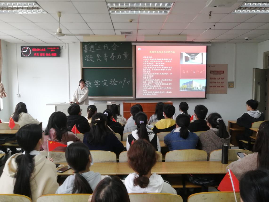 会议伊始,团支书徐文庆带领同学们首先学习了“三代会”的内容,了解了团的基层代表和高校学生代表是如何产生的以及代表们有哪些职责与权力,进一步坚定团员青年永跟党走的信心和决心,不断提升团组织的凝聚力、影响力和号召力,同时,团支书鼓励同学们学习深入“三代会”思想,凝聚青春力量。