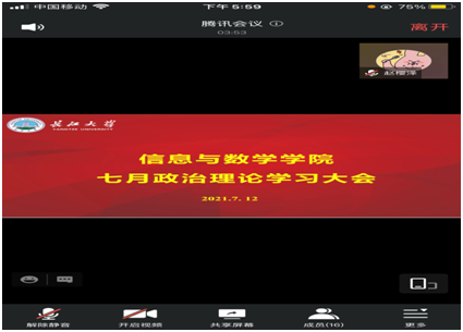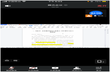 组织召开线上研究生政治理论学习大会。 会议邀请学院研究生成员赵悦同学主讲,学院全体研究生参加。