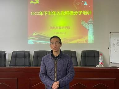于10月30日早九点半于8教406召开入党积极分子培训。院党委书记高迎斌,院党委副书记袁海山,院团委书记钟赛以及全院22年下半年入党积极分子与会。袁海山主持本次会议。