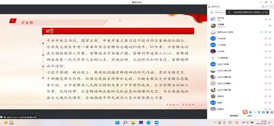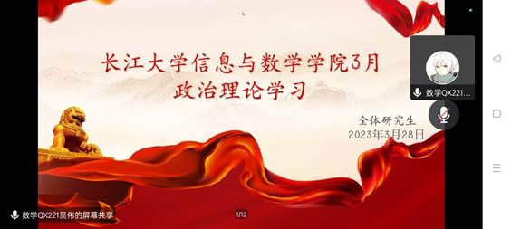 在腾讯会议召开3月政治理论学习会议,此次会议吴伟主持,全体研究生线上聆听。