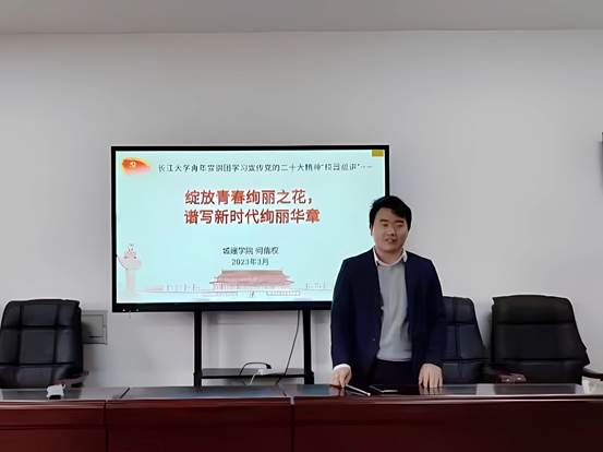 青年宣讲团学习宣传党的二十大精神“校园巡讲"——绽放青春绚丽之花,谱写新时代绚丽华章。接着,由何儒权围绕从两个“题”点名宣言之旨、从六个“新”领悟思想之力展开讲解。从两个“题”点名宣言之旨提到了高举中国特色社会主义伟大旗帜,为全面建设社会主义现代化国家而团结奋斗,强调了高举旗帜、凝聚力量、团结奋进。从六个“新”领悟思想之力中提到了“新成就——新时代”的伟大变革和新境界——推进马克思主义的中国化时代化。“新成就——新时代”的伟大变革强调了新时代的十年,其中有三件大事和十六方面成就。新境界——推进马克思主义的中国化时代化,强调了如今形成了习近平新时代中国特色社会主义思想这一重大理论创新成果,实现了马克思主义中国化时代化新的飞跃,开辟了马克思主义中国化时代化新境界,为新时代党和国家事业发展提供了根本遵循以及新思想的世界观与方法论,即人民至上、自信自立、守正创新、问题导向、系统观念、胸怀天下。学习过程中,全体学员始终保持认真的学习态度、昂扬的精神面貌和良好的组织纪律性。