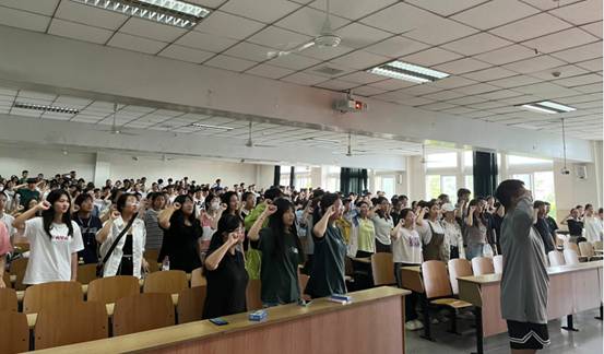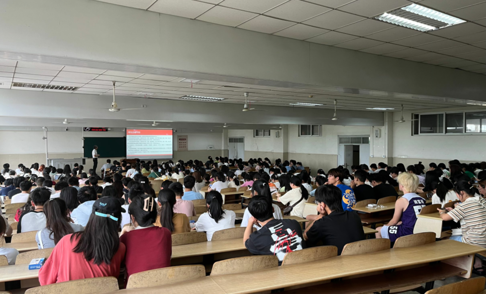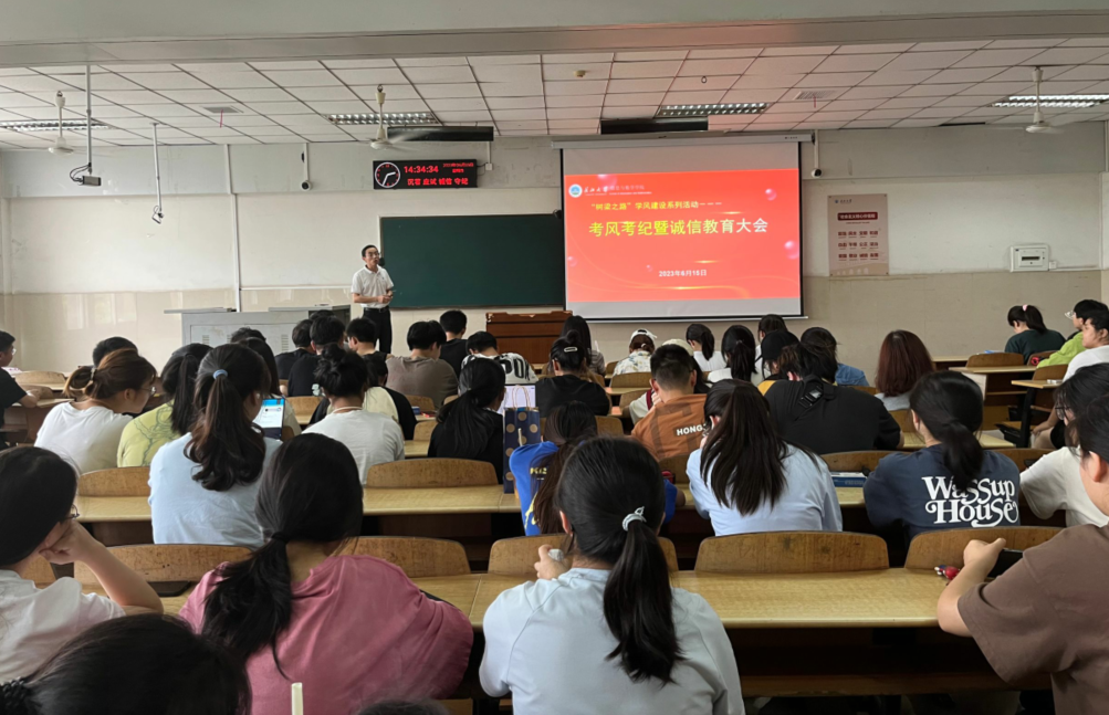 在12教202召开考风考纪诚信教育大会,本次大会由学院党委副书记袁海山主讲,全体报名参加2023年上半年大学英语四六级考试的考生参加会议。