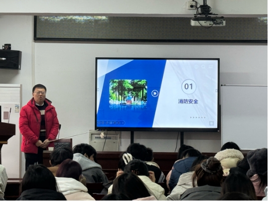 会上,谷书记首先围绕冬季消防安全主题展开讲解。他指出,冬季是火灾高发季节,校园消防安全工作至关重要。通过结合实际数据与典型案例,书记为同学们介绍了火灾预防的关键措施、火场逃生的实用技巧以及常见消防器材的正确使用方法。他还提醒同学们,要时刻保持警惕,主动预防火灾风险,切实维护自身和他人的生命财产安全。