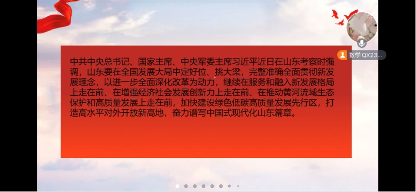 会上,学生们集中学习了习近平总书记在山东考察时的重要讲话,深入探讨了全面深化改革的动力以及推进中国式现代化在山东的具体实践。并对习近平总书记关于学校思想政治课建设的重要指示与总书记在中共中央政治局第十四次集体学习时强调的促进高质量充分就业的重要讲话进行了深入解读。同学们结合自己的实际情况,探讨了思想政治课建设的重要性及如何在新时代背景下提升劳动者的获得感、幸福感和安全感等问题。