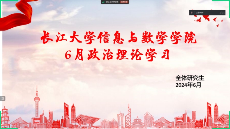 于2024年6月24日下午2时于线上举办了6月份的政治理论学习活动。学院全体研究生参加了此次学习,会议由鲍泽智主持。