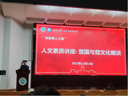 荣幸地邀请到了李征宇教授在12教405报告厅进行了一场关于荆楚文化的座谈会。副院长李向军、院学工办主任钟赛、新生辅导员吴朝晖及全体大一学生参与此次会议。本次会议由钟赛主持。