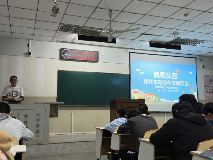 关于安全骑行的倡议书。引导学生车辆按照指定通道进出,在规定停车区域进行停放,同时要规范驾驶、文明骑车、行人安全走路、禁止超速等危险驾驶行为。最后,吴朝晖老师再次强调了在校骑行要安全第一,出行要注意安全。会议过程中,同学们聚精会神,认真倾听学校关于车辆摆放的相关规定。本次会议讲座圆满结束。