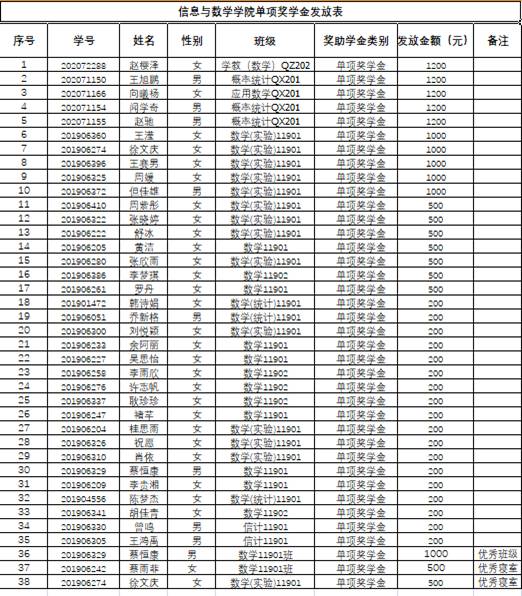 单项奖学金”奖励,现将拟获奖集体及个人名单公示如下: