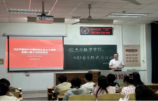 在13教B109召开了4月支部主题党日活动。本次活动由院党支部书记吴朝晖主持,信数学院全体党员共同参加此次活动。