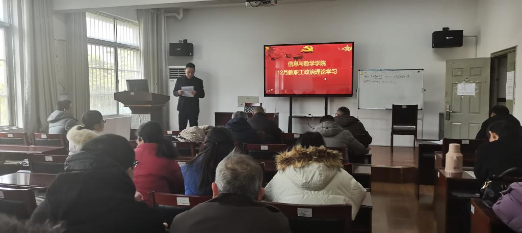 在8教406开展12月教职工政治理论学习。院长张涛主持学习活动,院领导班子成员及全体教职工参加会议。本次政治理论学习习近平总书记最新重要讲话、重要指示批示和文章精神,习近平总书记给高校师生的回信,省委决策部署,师德师风建设四个专题。