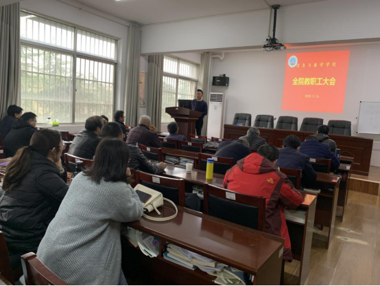 高迎斌就深入学习贯彻落实党的十九届五中全会精神提出三点要求:一要提高政治站位。要把学习宣传贯彻党的十九届五中全会精神作为当前和今后一个时期的重要政治任务,深刻领会党的十九届五中全会召开的重大政治意义、时代意义、历史意义,切实增强政治自觉、思想自觉和行动自觉;二要深入学习领会。深刻领会党的十九届五中全会精神实质、核心要义和丰富内涵,努力在学懂弄通做实上下功夫,切实把学习贯彻党的十九届五中全会精神同贯彻落实学校党委决策部署和学院工作结合起来,同正在编制的学院“十四五”发展规划结合起来,全面推动学院各项事业高质量发展;三要细化责任落实。坚持问题导向、目标导向,按照学院发展的目标要求,对标对表、补齐短板,抢抓机遇、乘势而上,不断提升学院治理体系与治理能力现代化水平,努力实现在“十四五”期间办学特色、办学水平、社会声誉的显著提高,开启学院发展的新征程。