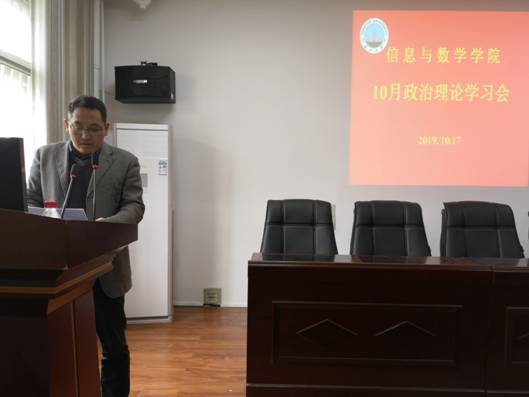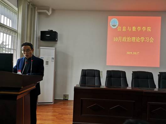 在8教406会议室举行10月教职工政治理论学习会和“支部主题党日”活动。党委书记高迎斌主持,全体教职工和全体党员参加。会议分两个阶段进行。