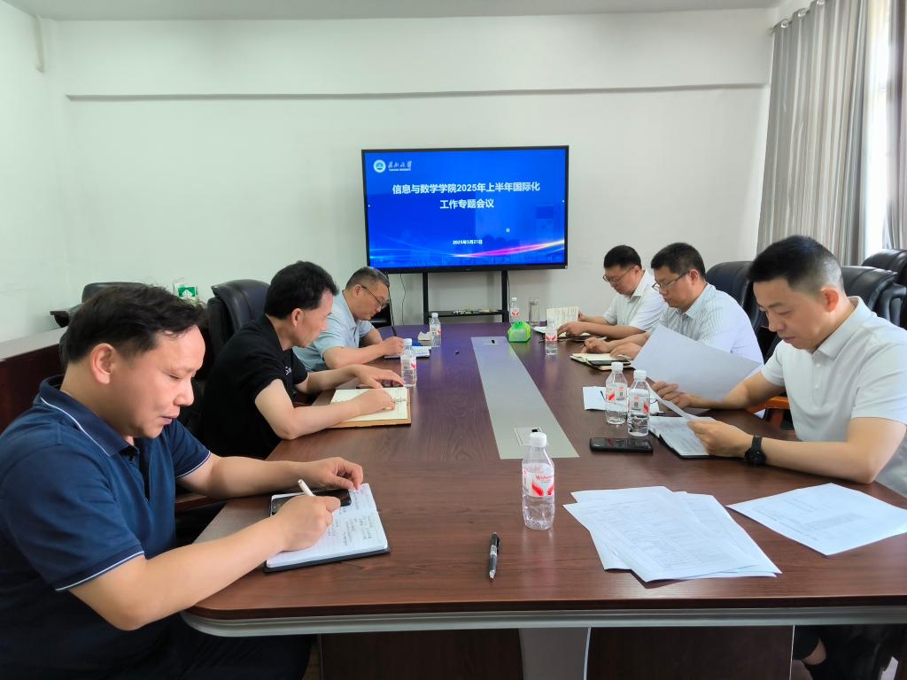 (通讯员 周鹂)2025 5 21 日,羞羞漫画 在8417会议室召开 2025 年上半年国际化工作专题会议,旨在进一步推进学院国际化发展战略,提升学院在国际学术交流、人才培养等方面的水平。院长张涛主持会议,党委书记李喜成、党委副书记谷军、副院长李向军、副院长李治、办公室主任张定国、外事秘书周鹂参与会议。