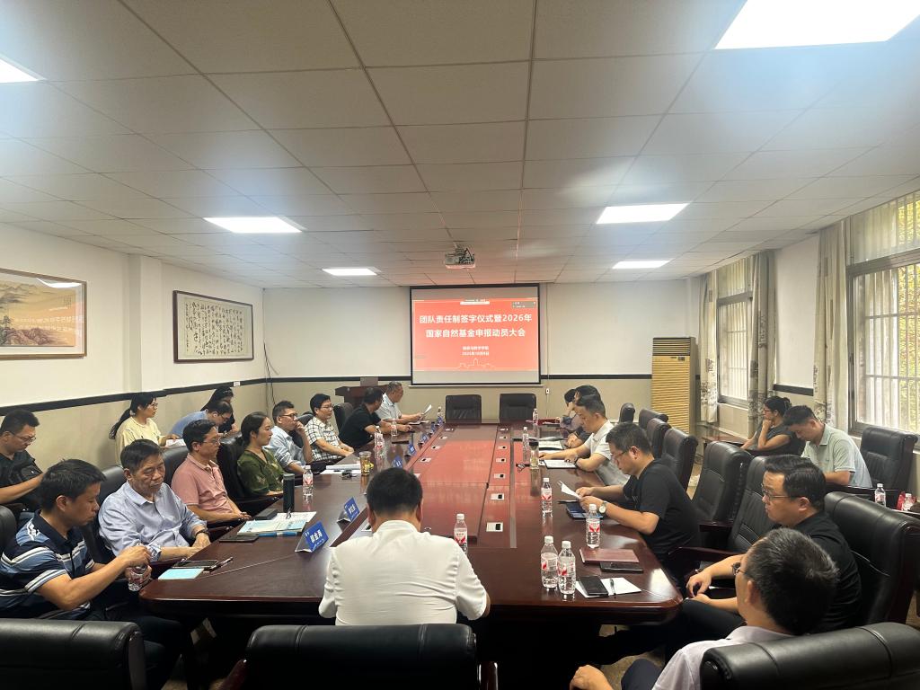 在8教210举行团队责任制签字仪式暨2026年度国家自然科学基金申报动员大会。各团队组长、副组长以及青年教师代表参加,武汉校区教师通过线上方式同步参会。党委书记毛德波主持会议。