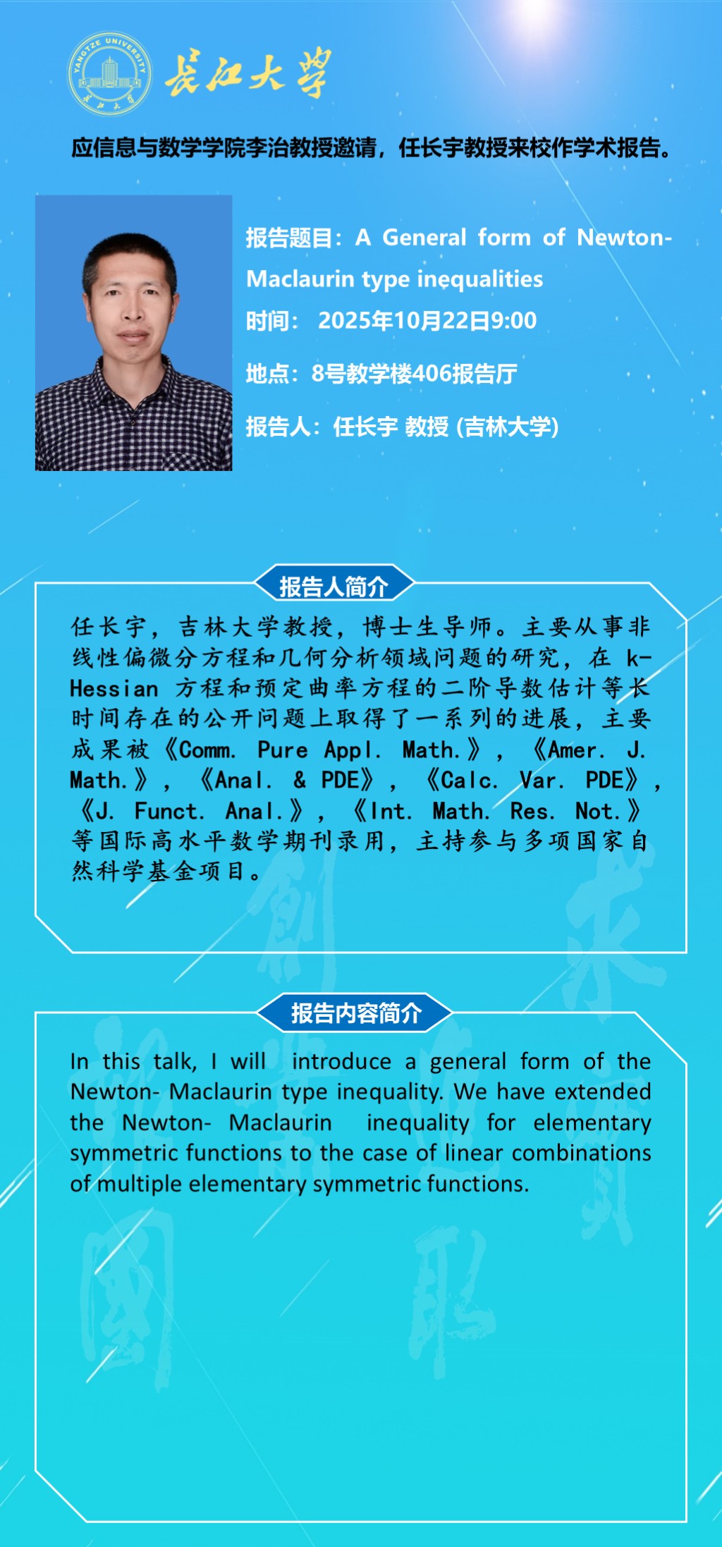 报告人 任长宇 教授(吉林大学) 报告时间 2025年10月22日上午9点