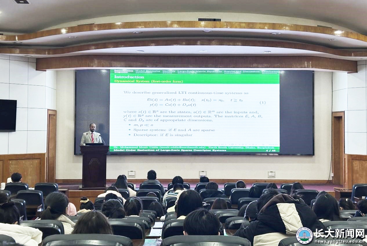 师生作了题为“Model Order Reduction of Large- Scale Sparse Descriptor Systems(大规模稀疏描述系统的模型降阶)”的学术报告。信数学院青年教师、研究生和本科生聆听了报告。