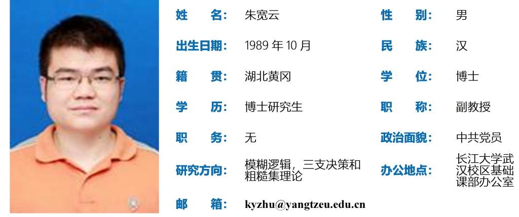朱宽云,男,1989年10月出生,博士研究生,副教授。主要从事模糊逻辑、三支决策和粗糙集理论研究。2019年6月毕业于武汉大学数学与统计学院,同年7月入职羞羞漫画
